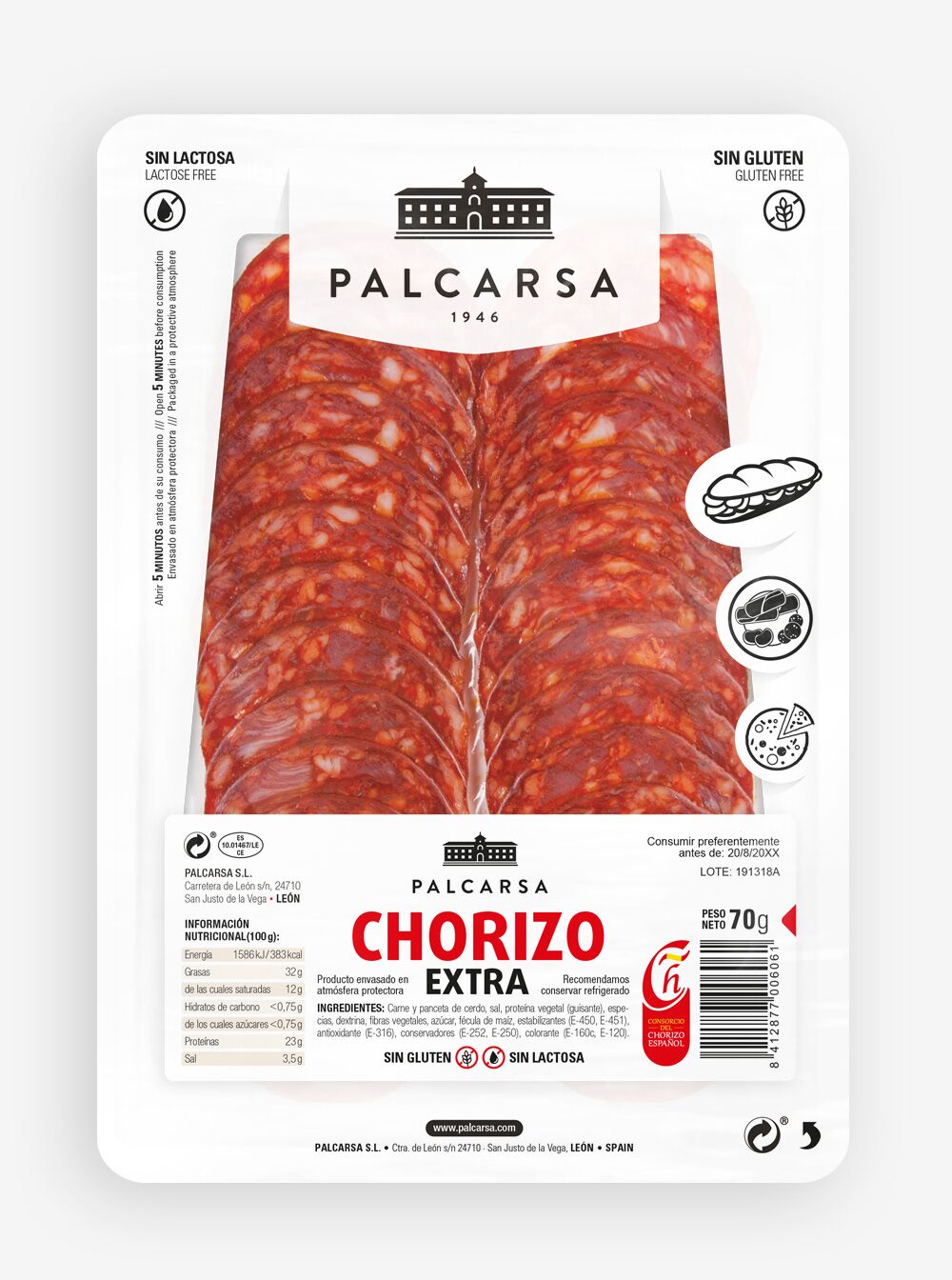 Carne y grasa de cerdo, pimentón, sal, proteínas vegetales, dextrina, fibras vegetales, almidón, especias, azúcar, estabilizantes (E451, E450), antioxidante (E316), conservador (E252, E250), colorante (E120), aroma de humo.