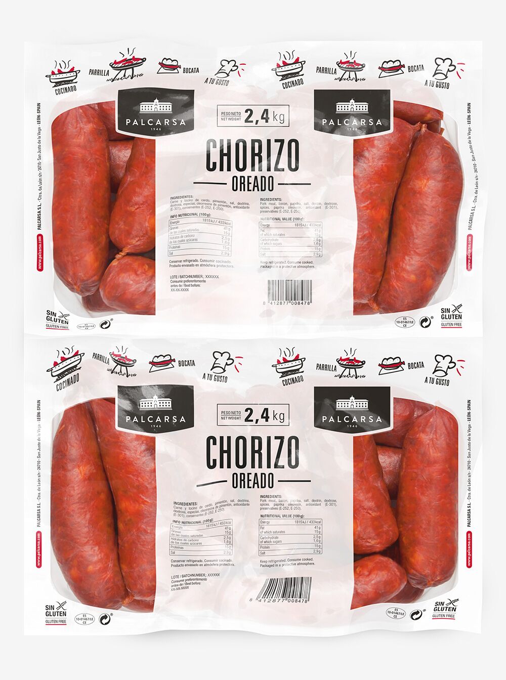 En este caso, lo presentamos en generoso formato de 2,4 Kg, que contiene entre 35 y 36 piezas de chorizo. La atmósfera protectora nos permite cuidar y proteger las cualidades naturales de este producto.
