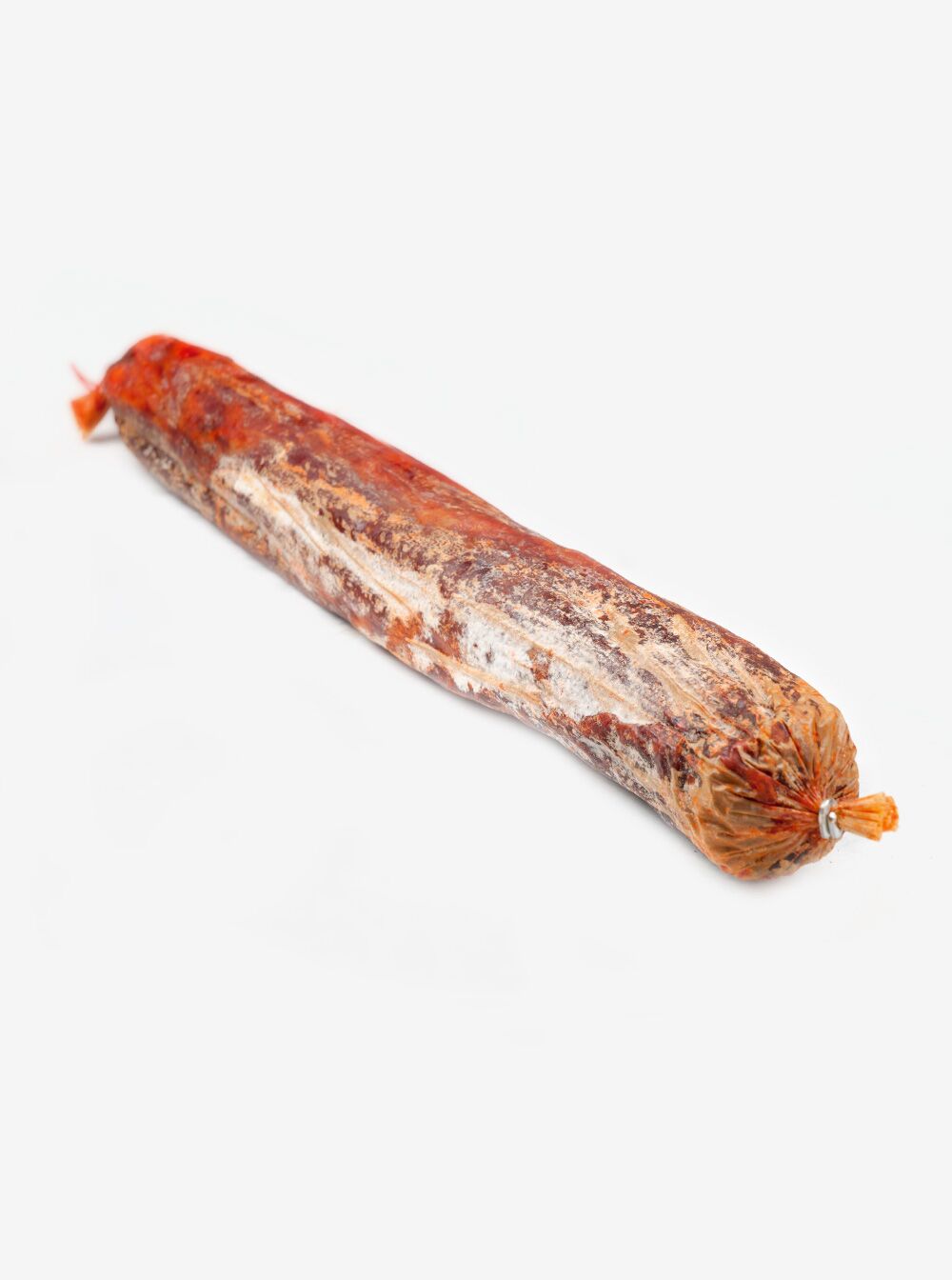 La elaboración no tiene otro misterio que el paso del tiempo e ingredientes de calidad: carne de cerdo seleccionada adobada en sal, pimentón y especias. El peso aproximado de la pieza ronda los 1,5-2 Kg.